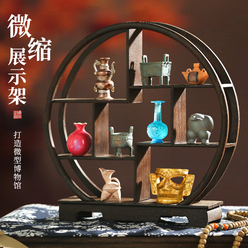 1050博古架摆件新中式实木多宝阁展示架茶架小圆形榆木隔断置物架书架