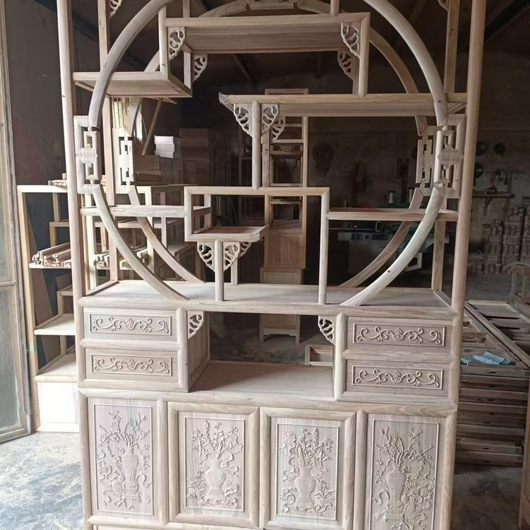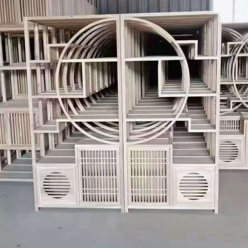 1800新中式实木多宝阁白茬博古架北榆木置物架茶叶展示架隔断白胚白坯