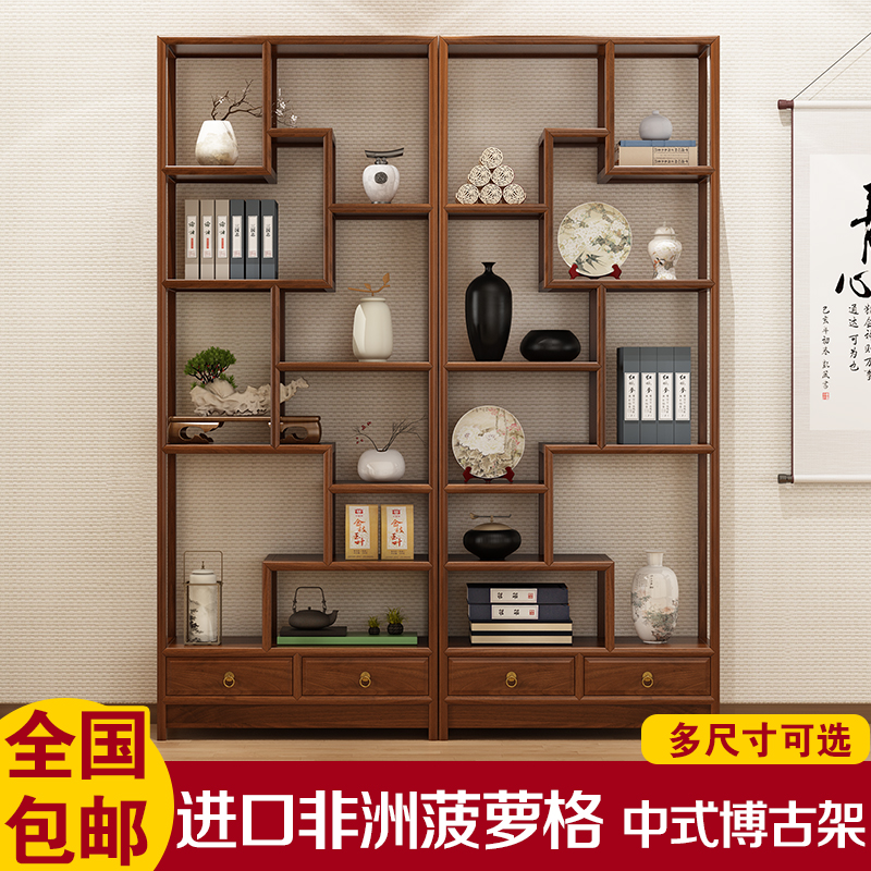 200新中式博古架实木多宝阁茶室置物架客厅隔断展示架办公室陈列架子