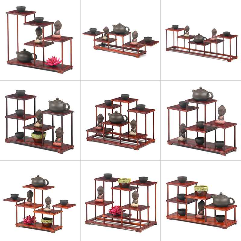 103.69博古架桌面茶杯收纳置物架子小型实木中式紫砂壶茶具茶叶摆件展示