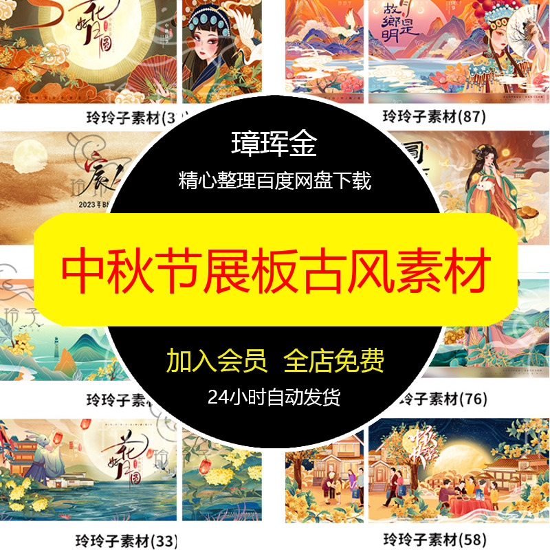 中秋节节日中秋节插画背景矢量海报包装月饼时尚几何图形兔子抽象