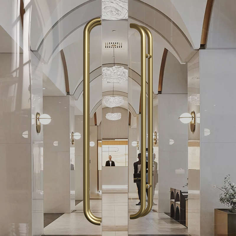 加厚不锈钢圆管四弯玻璃大门拉手有框玻璃门弯头定制明装弧形把手