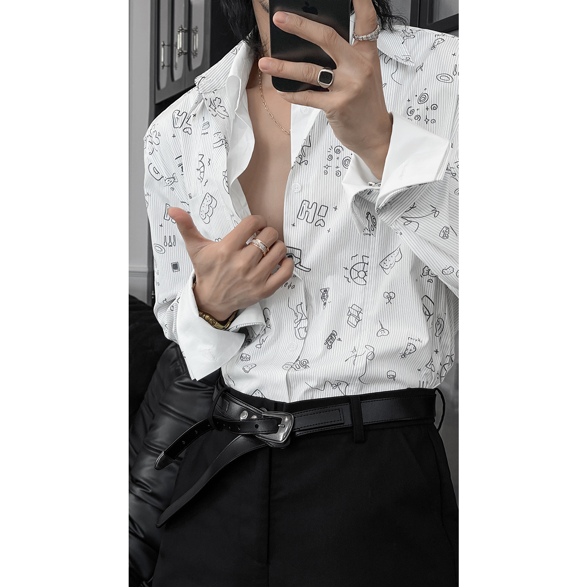 129.9龙叨叨2025春季新品设计师款假两件polo衫男简约百搭休闲长袖衬衫