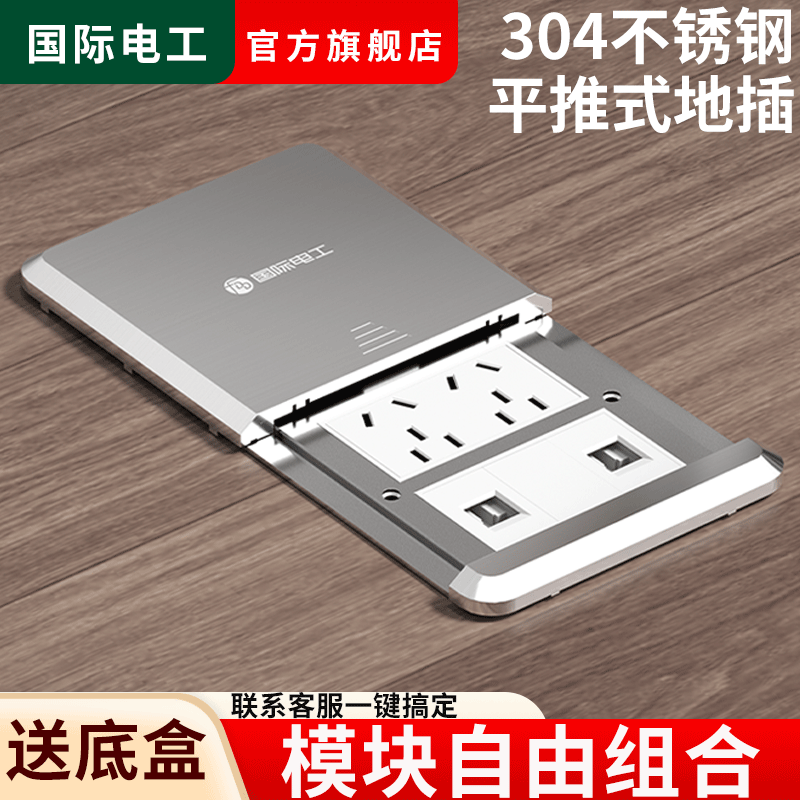 47.6平推式滑盖六类网络地插五孔棋牌室客厅地插网线网络地插面板