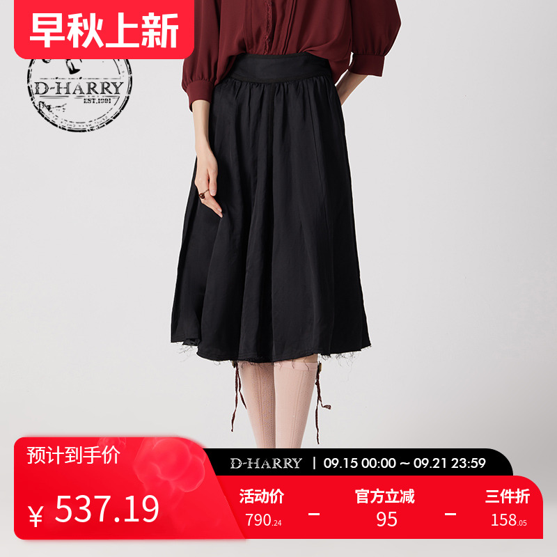 638.4D-HARRY/迪哈利新款优雅简约百搭黑色A字短裙DH244M97798D