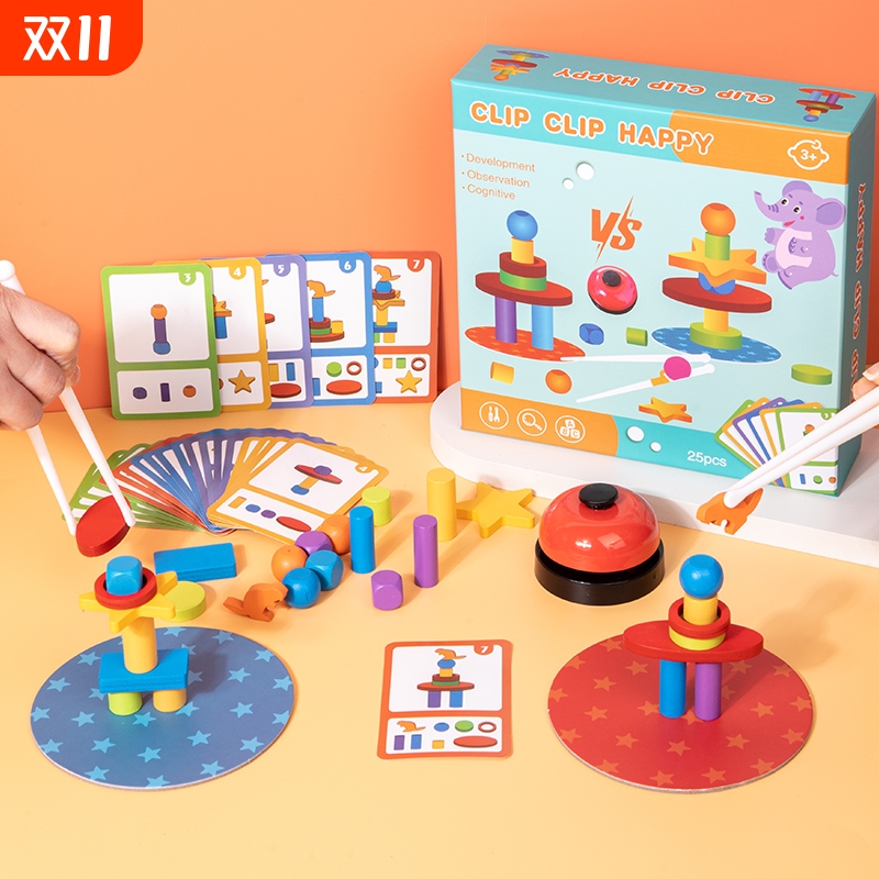44.8积木锻炼儿童学习用筷子手眼协调平衡稳定性比赛亲子互动玩具原木