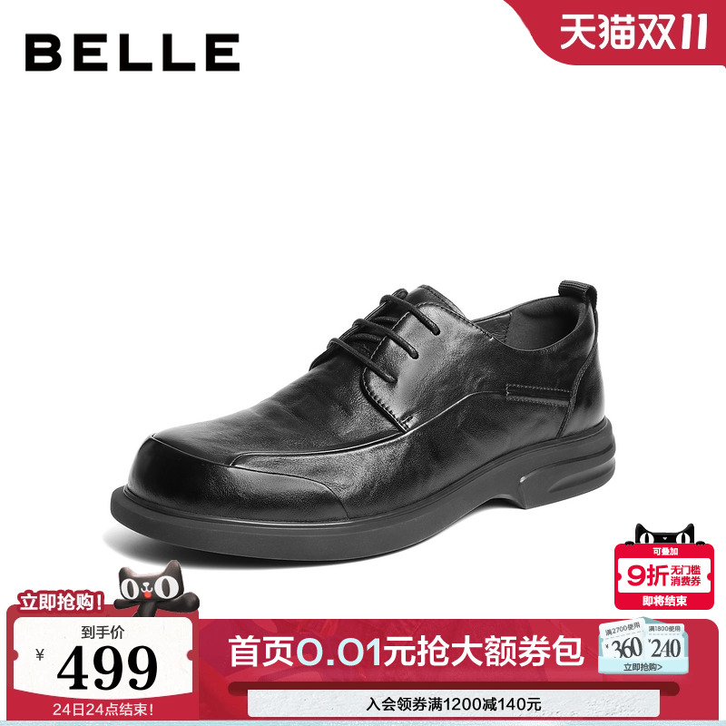 729百丽男鞋通勤商务增高真牛皮鞋男士25秋新商场款休闲婚鞋8XF01CM5