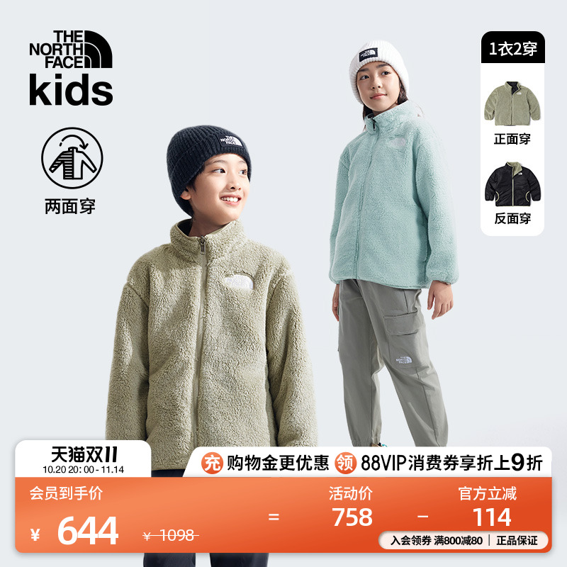 758北面童装儿童抓绒外套两面穿仿羊羔绒保暖TheNorthFace|8A3F