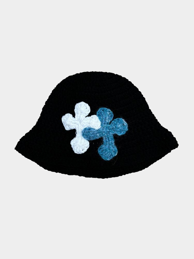 "Y.A.R.N." 3D double Cross Handmade Knit hat手工十字帽子