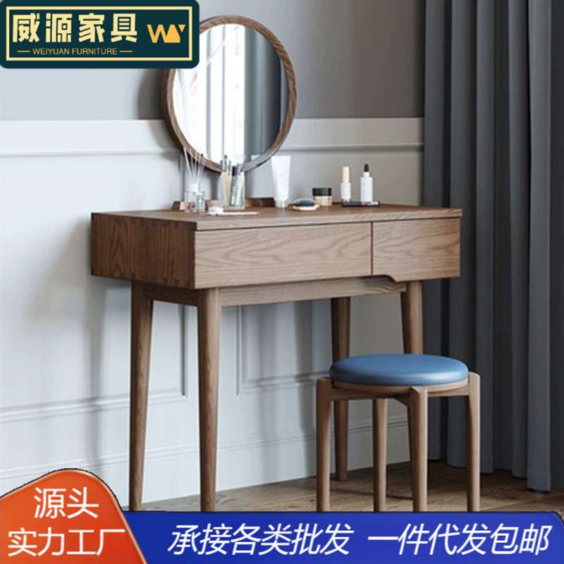 3052实木梳妆台卧室现代简约白蜡木化妆桌子北欧小户型轻奢高档化妆台