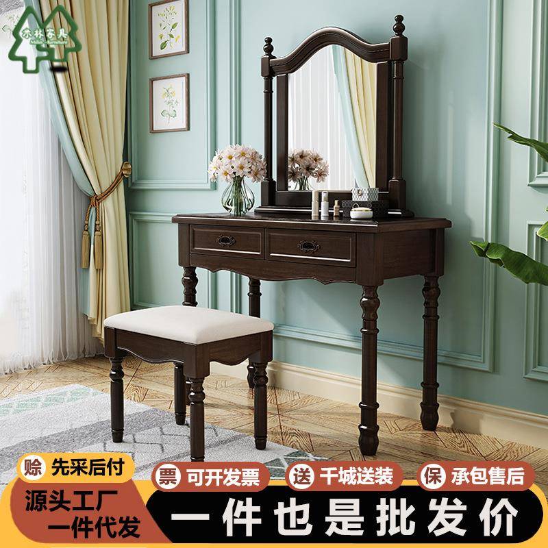 8801.1美式实木梳妆台镜子欧式家用简约卧室主卧收纳柜一体化妆台小户型