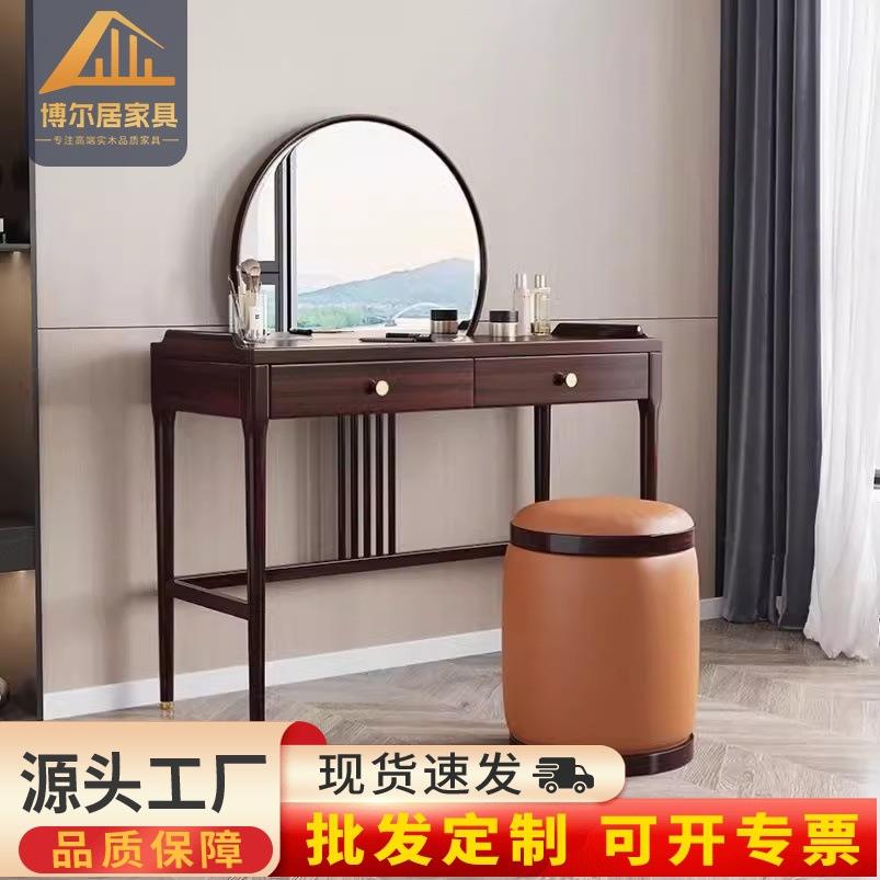 2634.4新中式胡桃木实木梳妆台带镜子现代简约储物收纳柜一体家用化妆桌