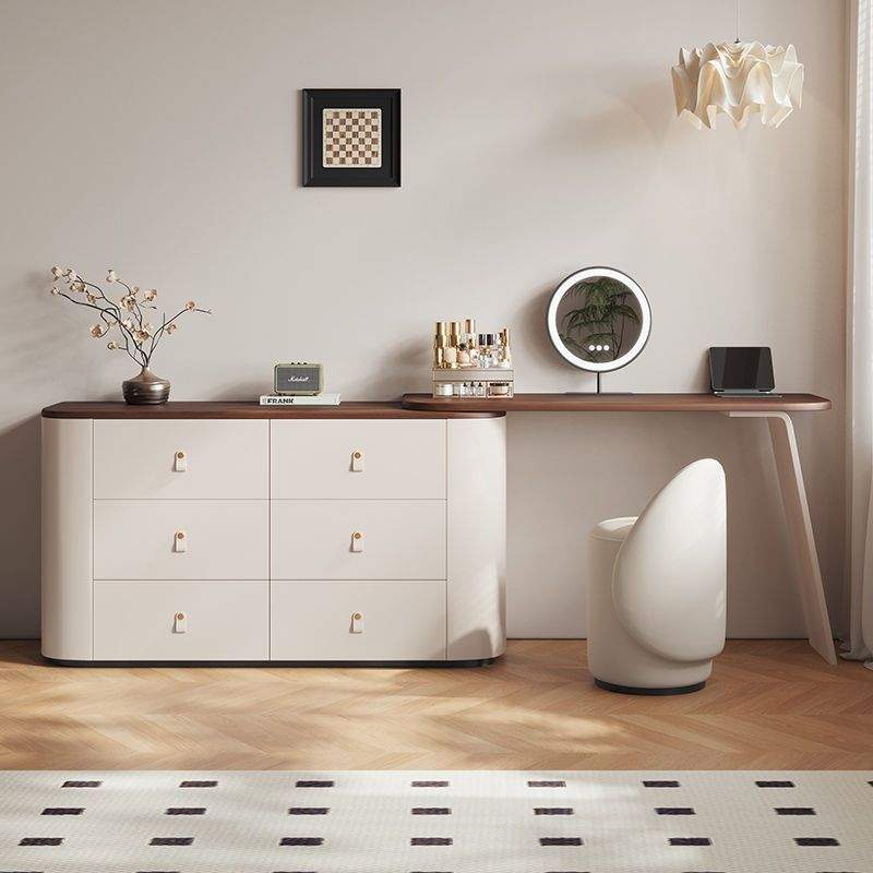 3169奶油风实木梳妆台斗柜一体网红化妆桌现代简约卧室化妆台斗柜组合