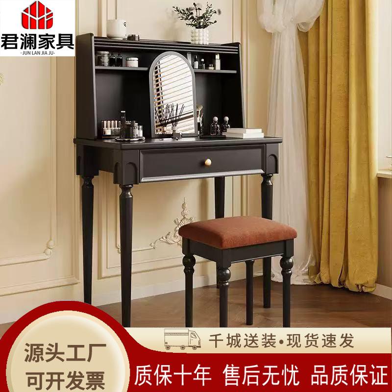 6809.6法式复古梳妆台小户型主卧黑色实木梳妆台感中古收纳化妆桌