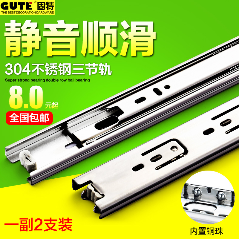 固特抽屉滑轨静音衣柜侧导轨顺滑三节轨滚珠键盘轨道家具五金配件