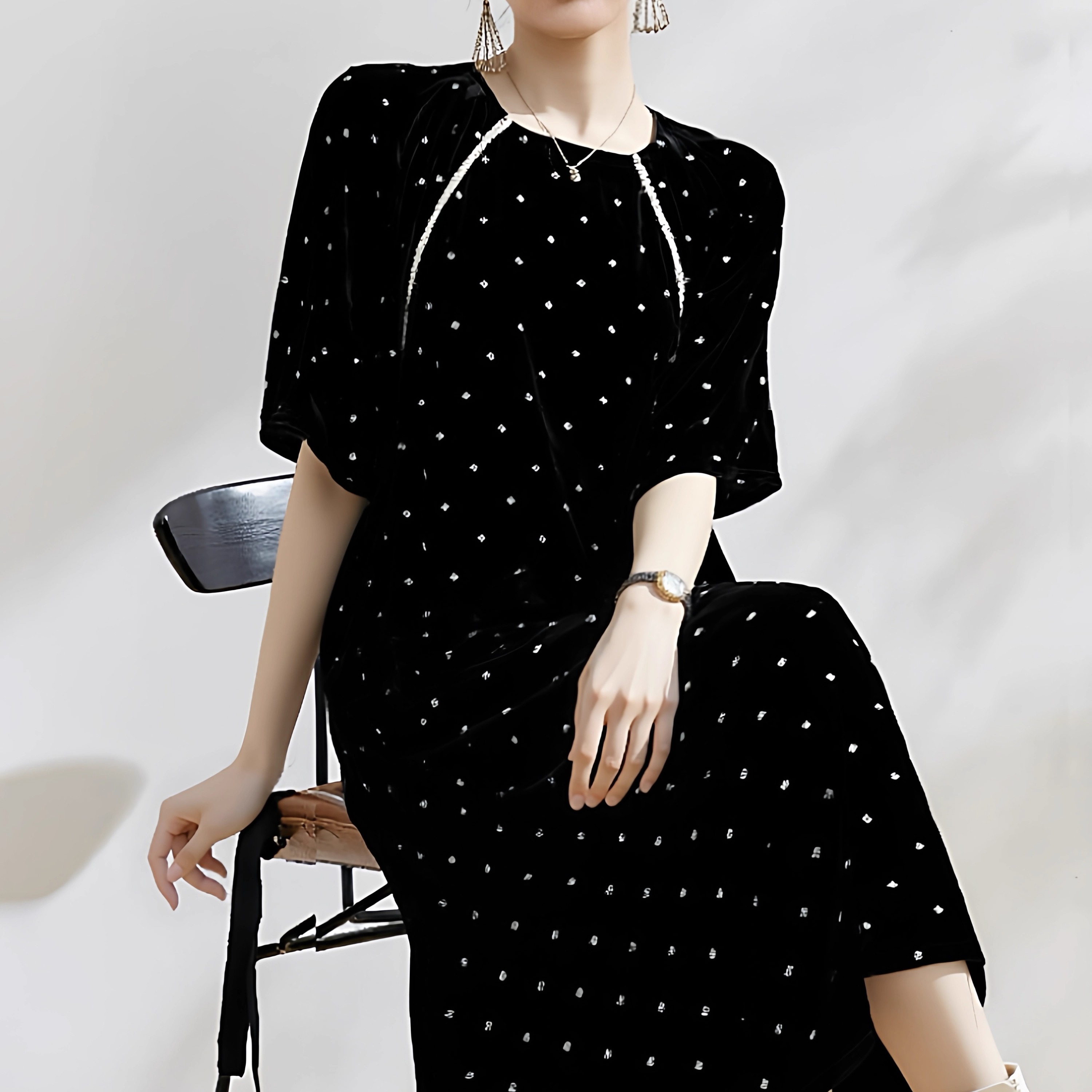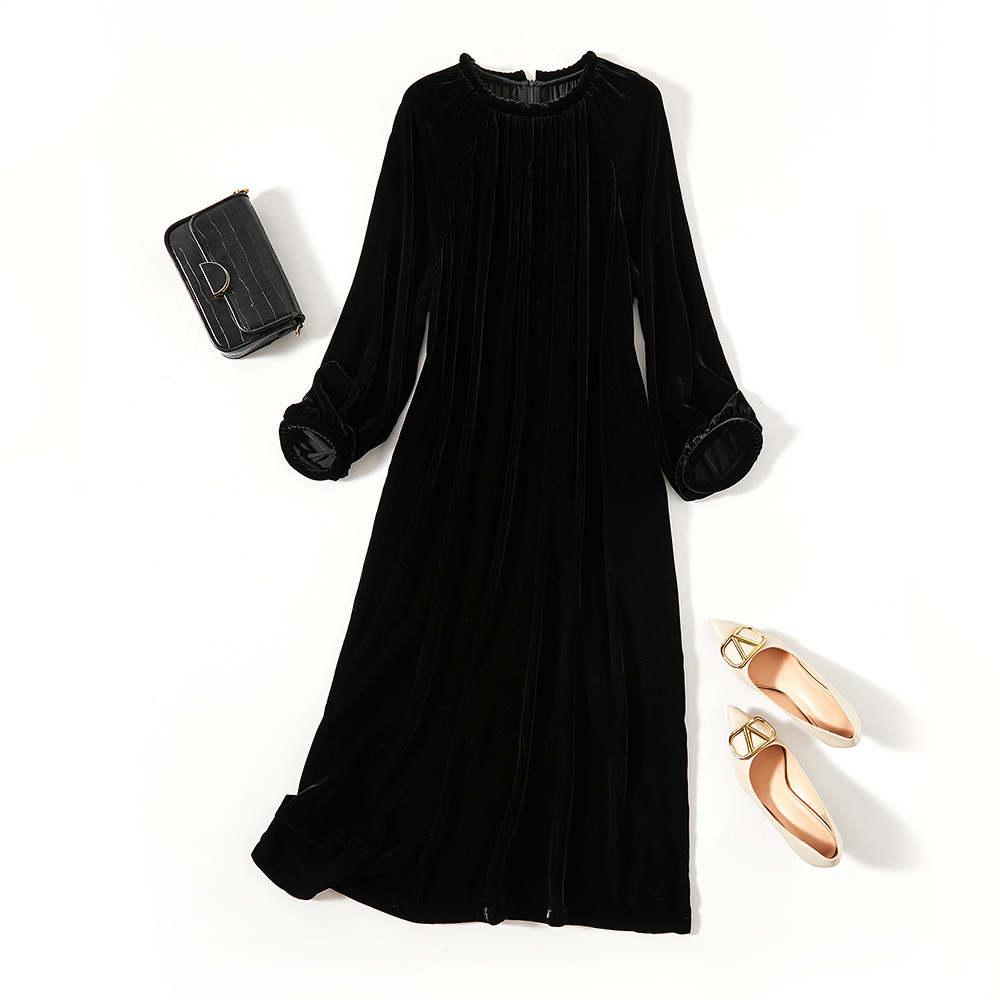 秋冬季女高级感优雅显瘦真丝丝绒连衣裙黑色名媛风桑蚕丝气质长裙