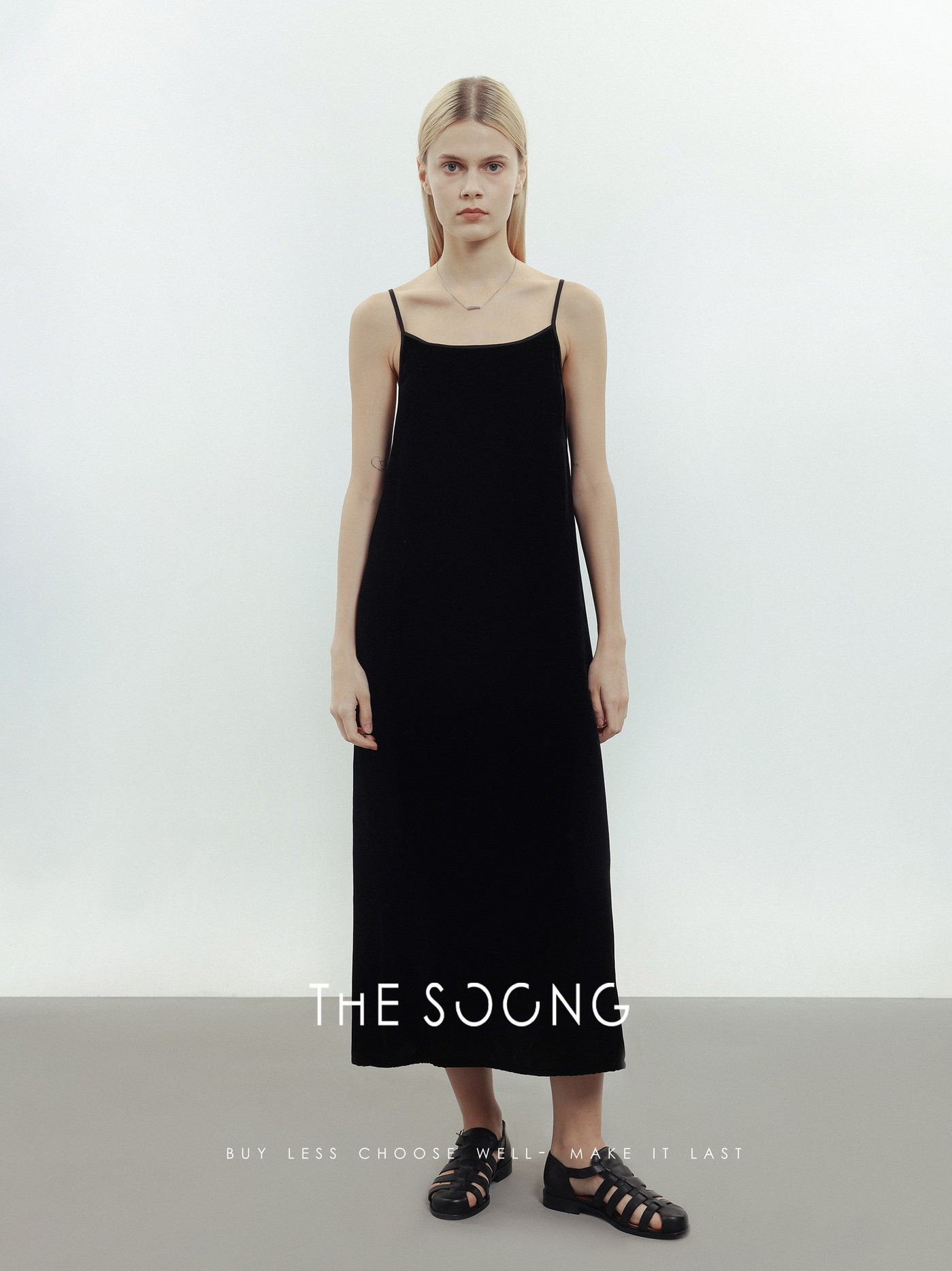 822.35THESOOG/纤穠美人 100%真丝丝绒连衣裙黑色优雅长裙3781