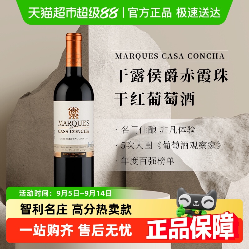 299智利名庄ConchayToro干露侯爵赤霞珠干红葡萄酒原瓶进口