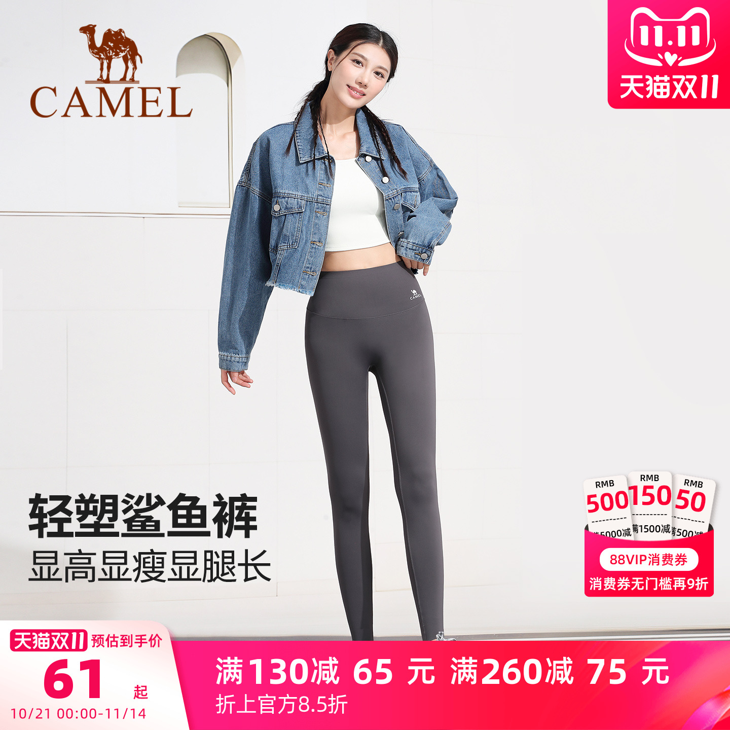 149骆驼鲨鱼裤女秋冬紧身户外跑步黑色加绒瑜伽裤打底裤爬山运动长裤