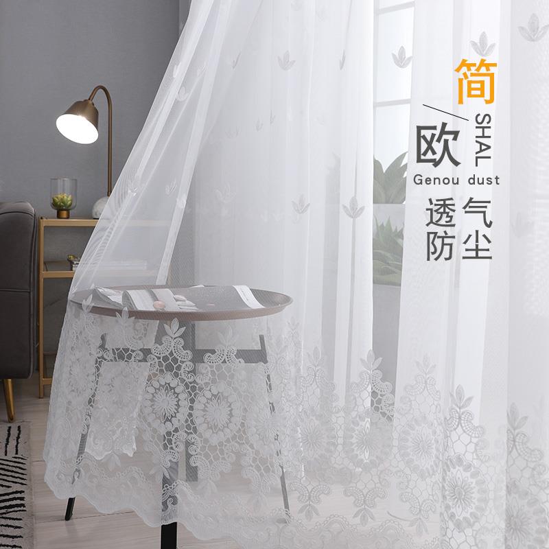 59.02加厚窗帘窗纱纱帘透光不透人北欧简约卧室飘窗客厅隔断白色纱门帘