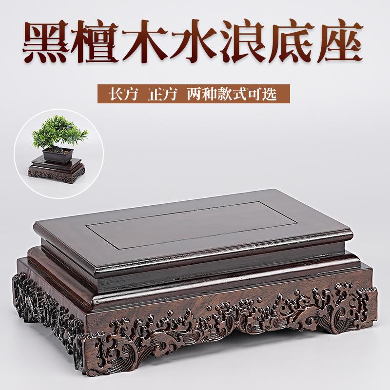 162红木雕刻工艺品黑檀木摆件底座实木托架长方形奇石头花瓶佛像底座