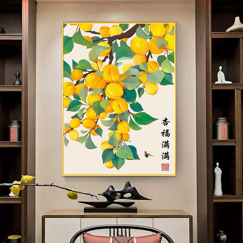 新中式diy数字油画手工填充涂色手绘平安喜乐杏福满满客厅装饰画