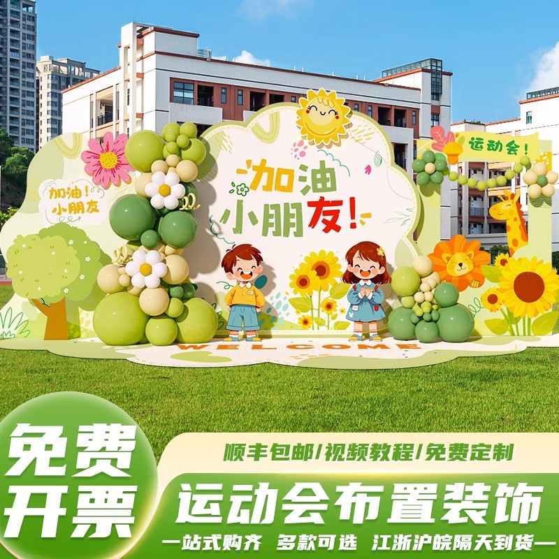 239.9秋季运动会活动场景布置校园操场室外装饰背景KT板可改文字加校名