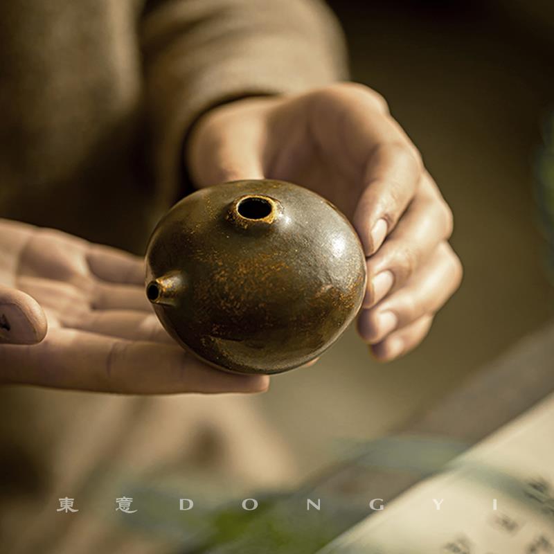 142东意文房 圆融黄铜砚滴水滴墨滴仿古小水盂磨墨书法滴壶迷你砚台