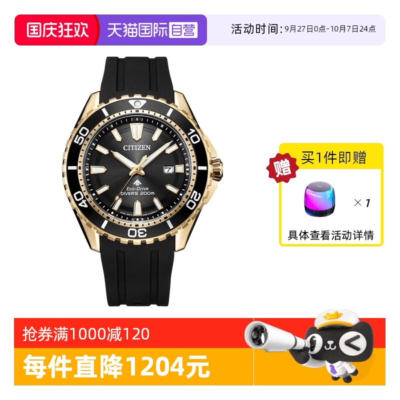 1318西铁城官方正品官网光动能男表防水夜光专业潜水表时尚手表BN0193