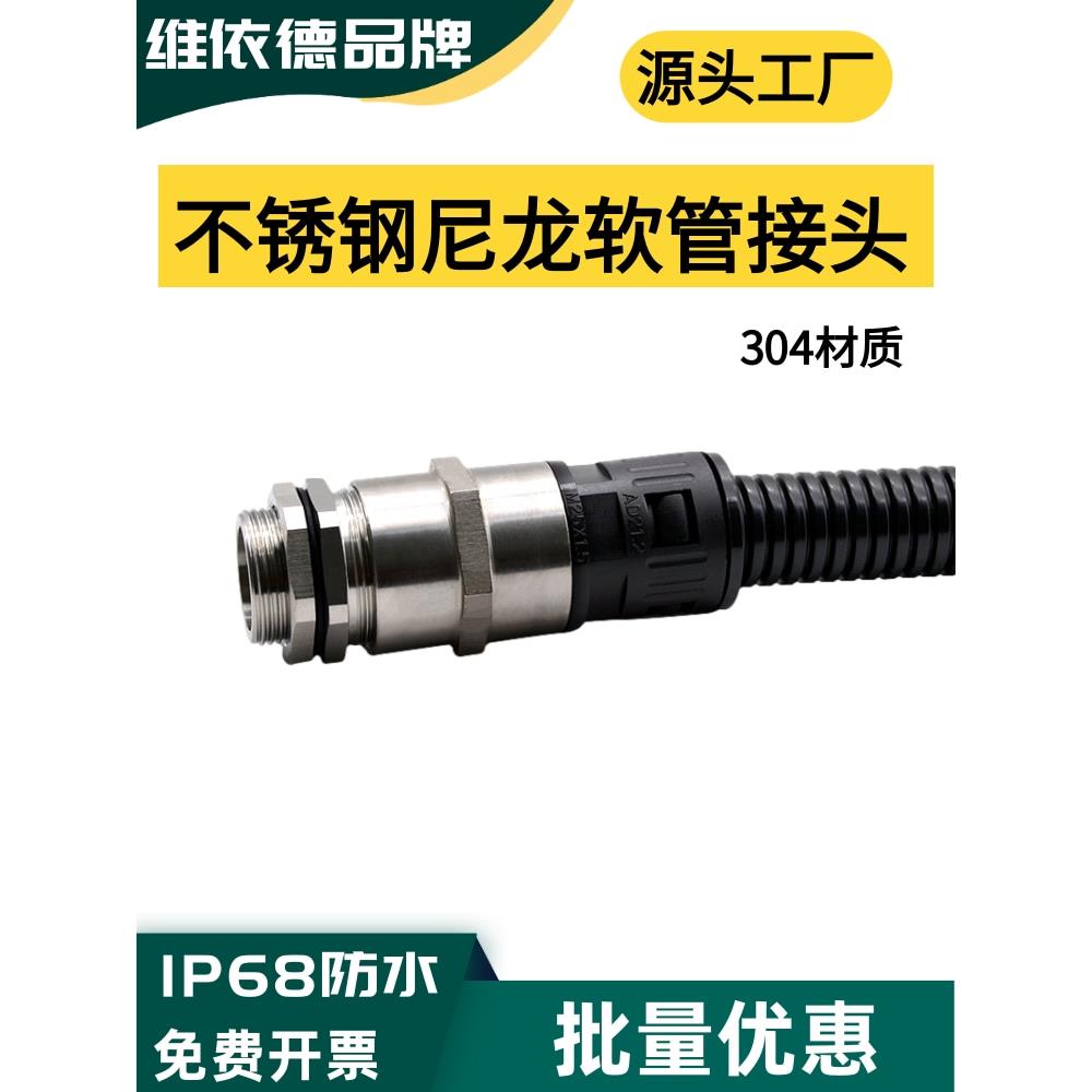 不锈钢尼龙带锁紧波纹管电缆接头AD15.8-M20快插浪管固定线缆密封