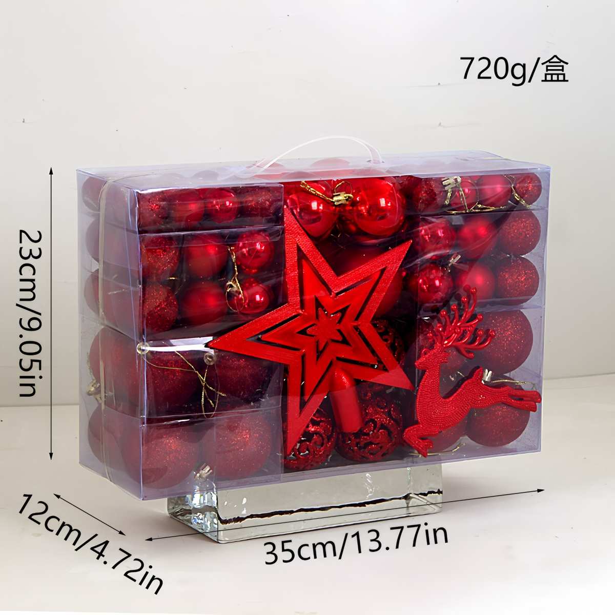 工厂直销现货圣诞球102pcs套装镂空球圣诞节装饰品麋鹿挂圣诞树