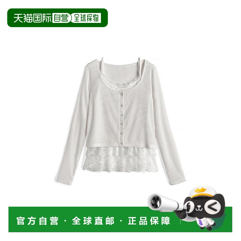 221日本直邮日潮 GRL蕾丝荷叶边吊带衫X罗纹内衣长袖开衫套装DK1507
