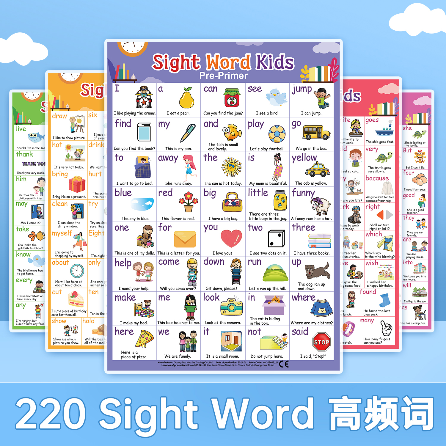 23.4220高频词挂图点读海报墙贴sight words卡片英语自然拼读单词教具
