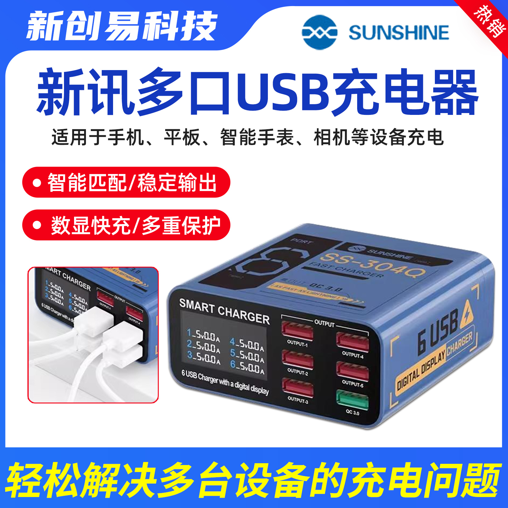 172.2新讯SS-SS-304Q口USB充电器排插多孔手机充电器5V2A多功能显示快