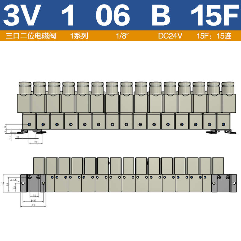 253V1-06电磁阀二位三通3V106B-1F/2F/3F/4F/5F/6F/8F集成串联阀组