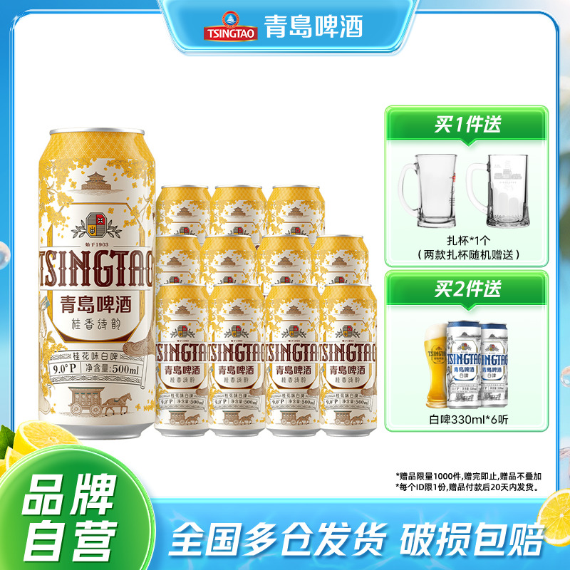 99青岛啤酒桂花味白啤500mlx12罐啤官方正品麦香浓郁整箱包邮