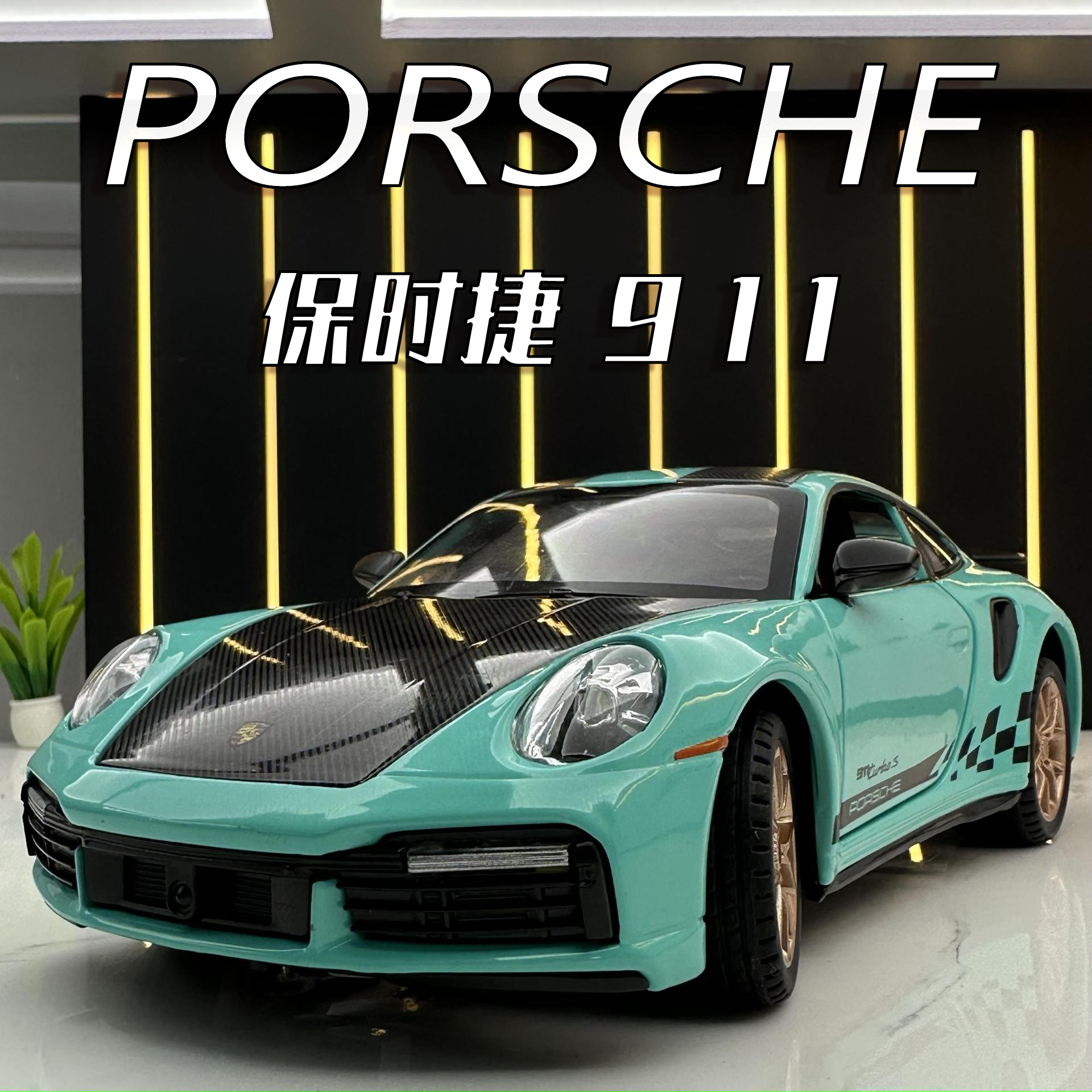 潮玩合金汽车模型1:24保时捷911TurboS 收藏摆件声光可能玩具跑车