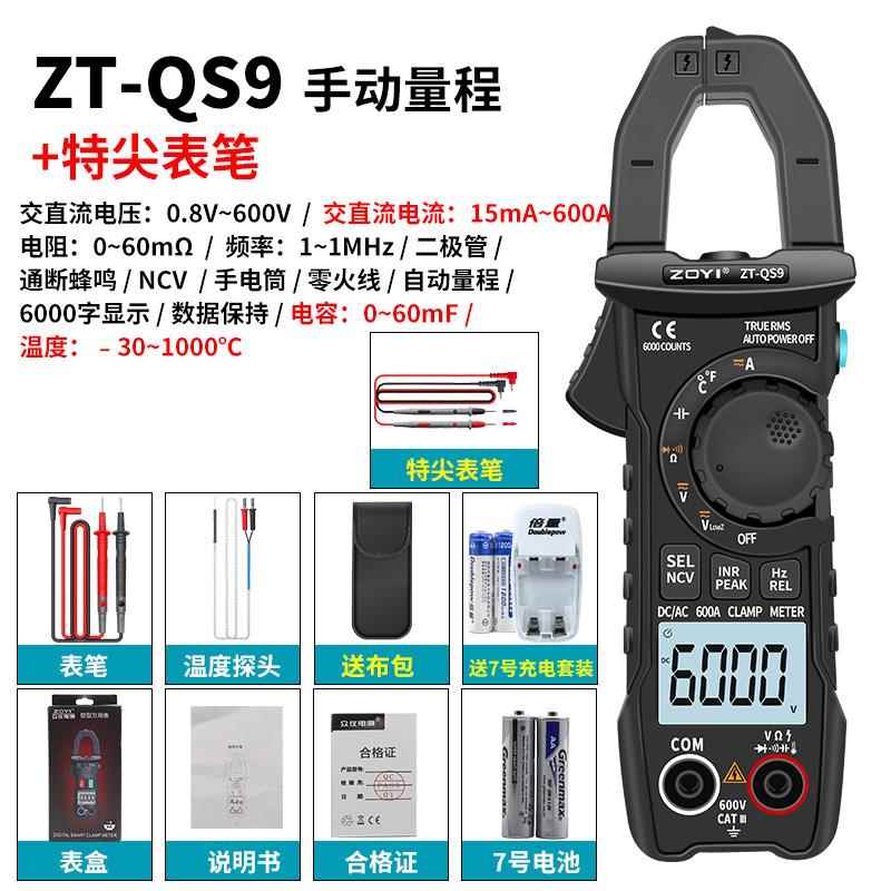 126众仪ZT-QS9交直流600A钳形万用表数字电流表多功能电工电容高精度