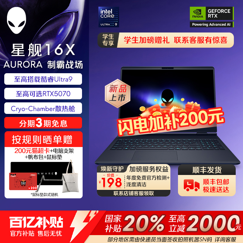 15999【政府补贴20%】外星人(Alienware)星舰 16X 笔记本电脑 16英寸游戏本酷睿Ultra7/9 可选RTX5060/RTX5070
