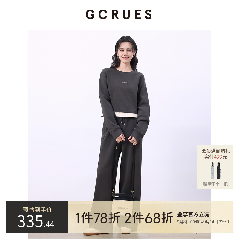 599GCRUES商场同款休闲运动灰色卫衣套装女阔腿裤两件套 G01C13A0662