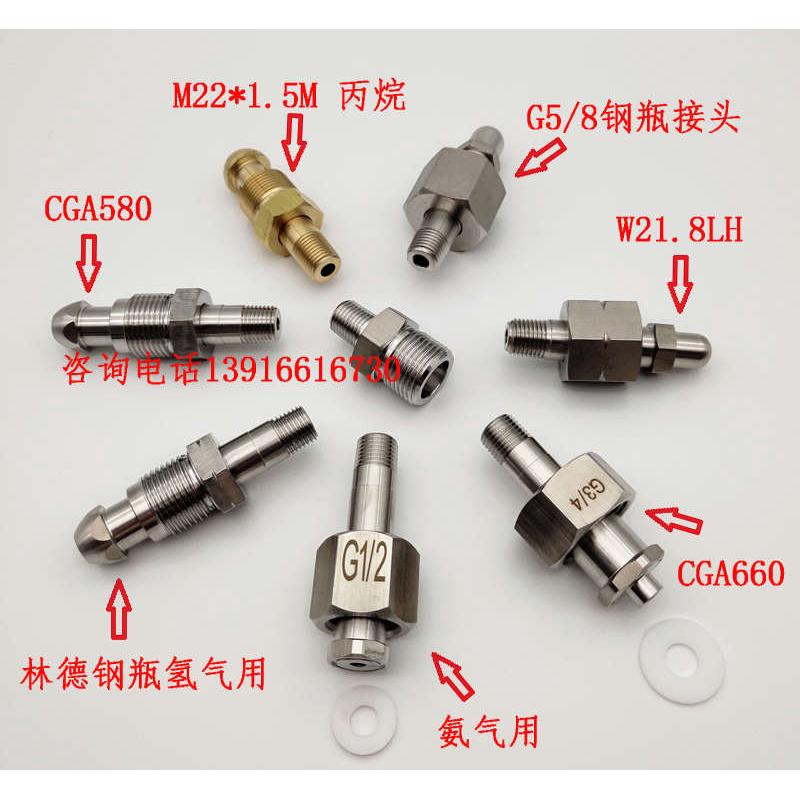 不锈钢钢瓶接头G5/8小钢瓶W21.8CGA330CGA660CGA580气瓶转换接头