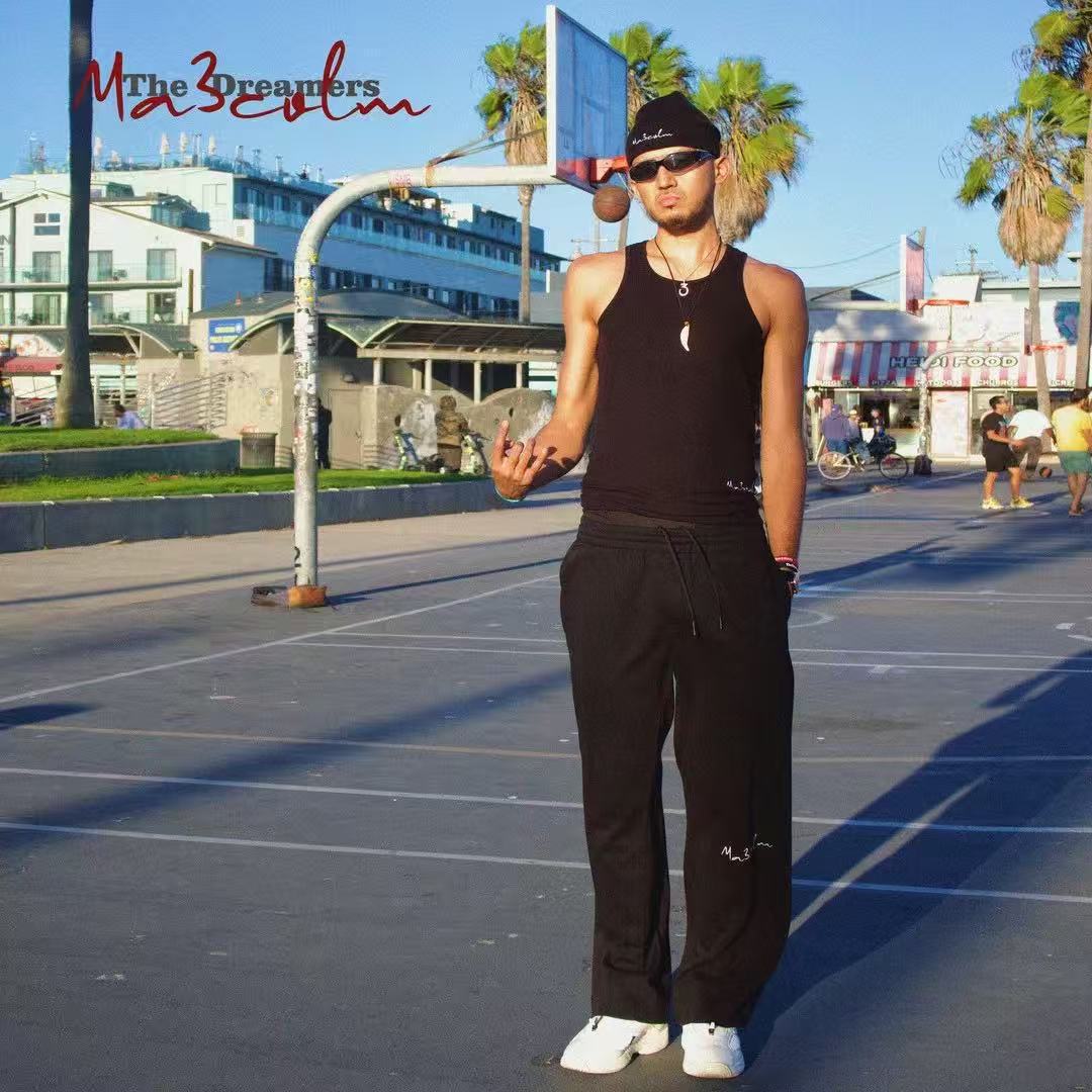 Ma3colm追梦系列日常通勤针织黑灰色宽松拼接直筒刺绣长裤卡米然