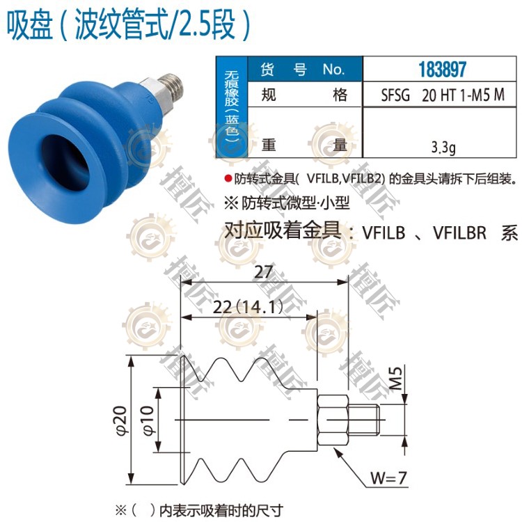 eins真空波纹管式无痕吸盘SFSG20HT1-M5M星塔机械手治具配件吸嘴