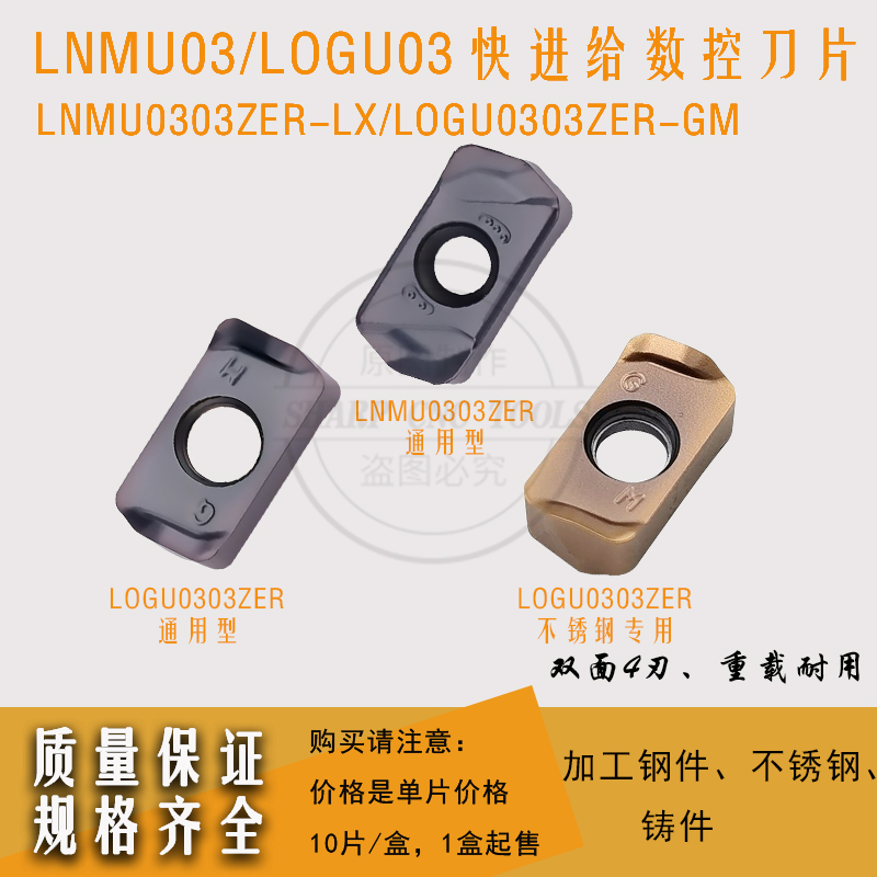数控铣刀盘EXN03R双面快进给铣刀片LNMU0/LOGU303ZER-LX-GM不锈钢