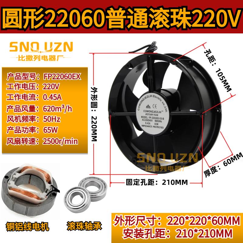 52包邮纯铜线FP22060EX-S1-B机箱散热风扇220V/380圆形22CM轴流风机