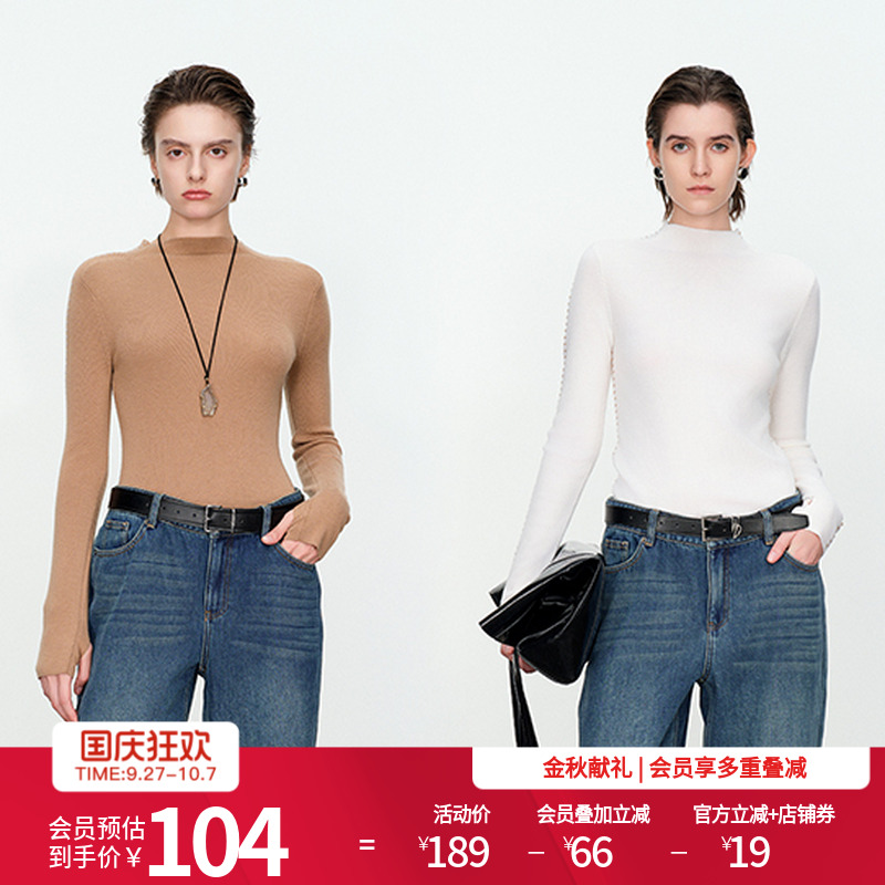 134婉甸驼色/米白长袖毛织套头衫修身1234W26JX2