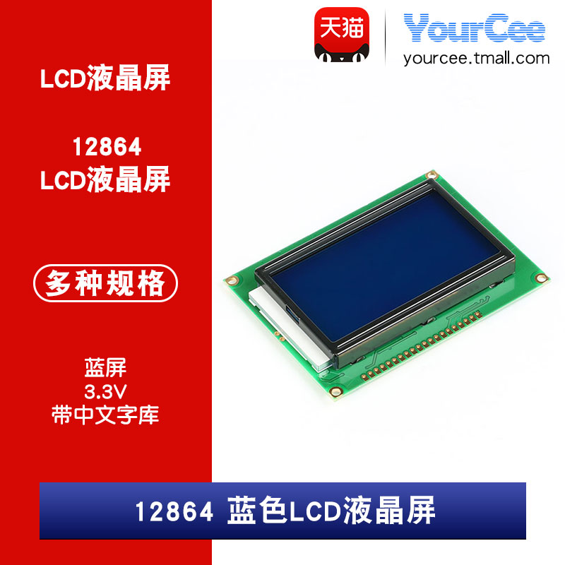 LCD12864显示屏蓝屏带中文字库带背光 J12864 ST7920 3.3V 蓝屏