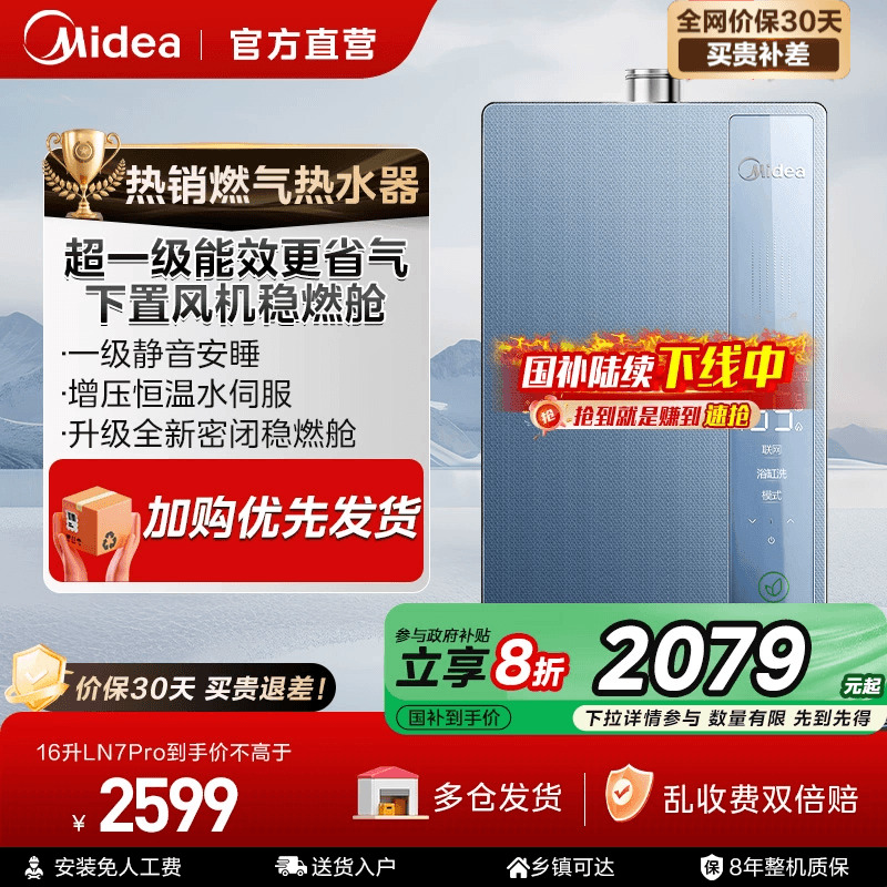 5999[政府补贴]美的绿洲燃气热水器一级能效16升天然气水伺服LN7