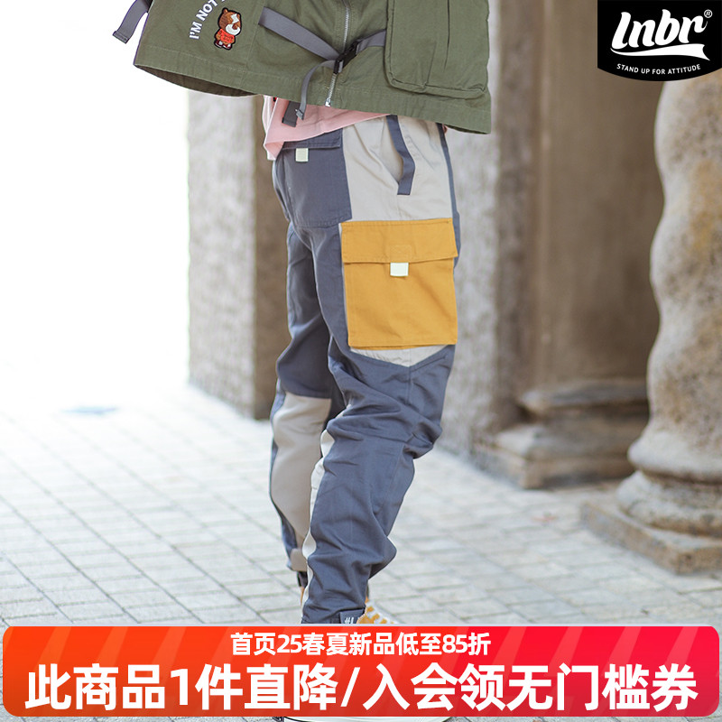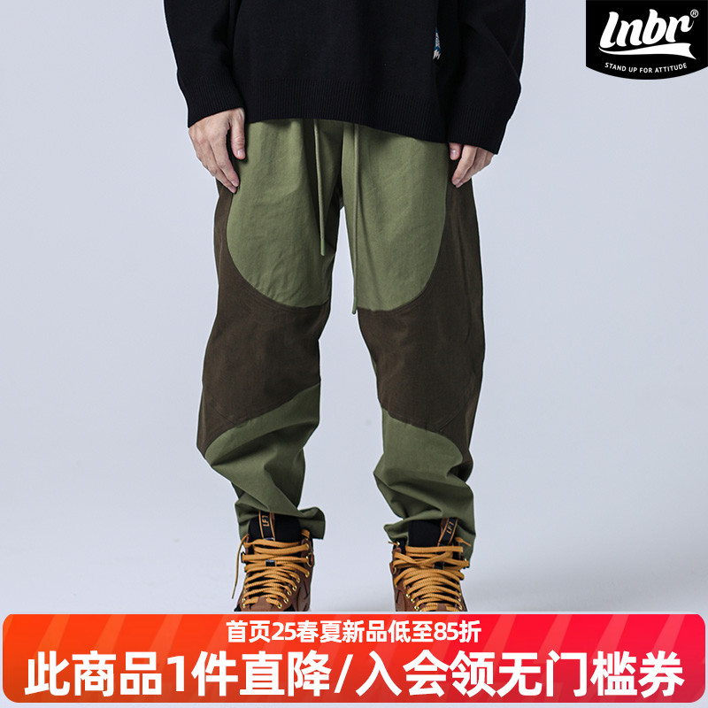 299LNBR秋冬撞色休闲拼色阔腿工装长裤宽松百搭潮流加大码休闲裤男潮