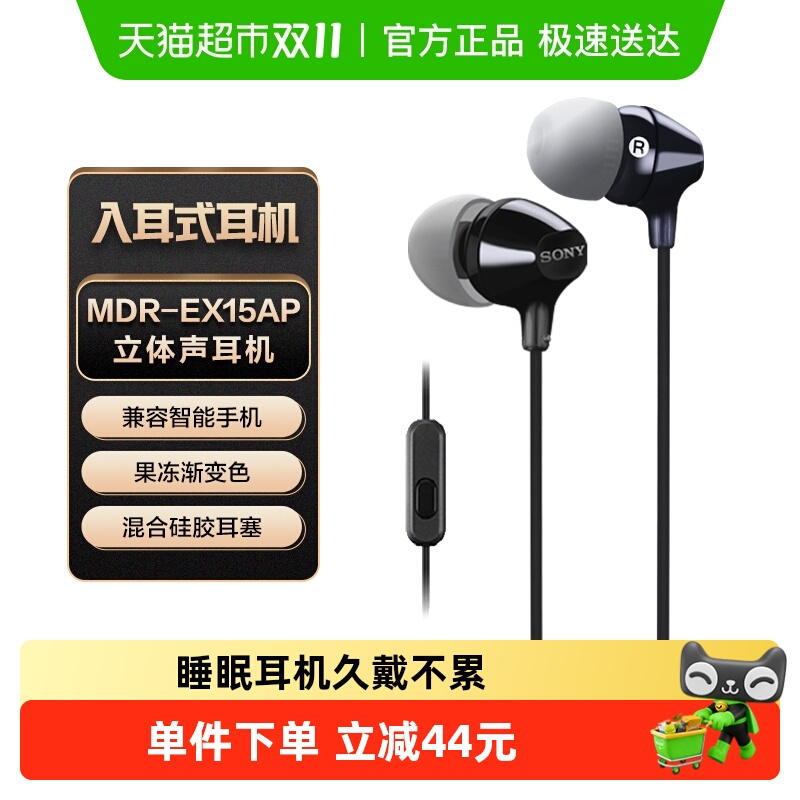 289Sony/索尼 MDR-EX155AP 入耳式耳机有线高音质3.5mm电脑带麦